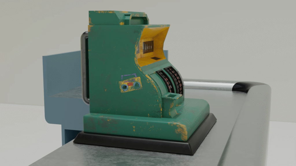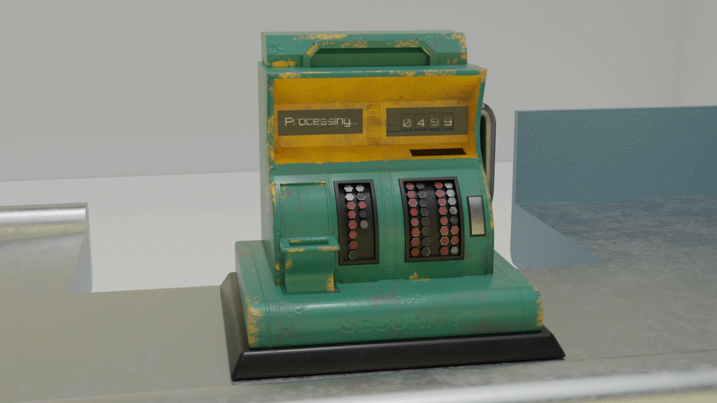 Este modelo fue inspirado en una caja registradora vintage, combinando formas clásicas con una estética estilizada y ligeramente desgastada. El objetivo fue practicar el modelado de objetos mecánicos con detalle, el uso de texturas PBR y la aplicación de efectos de desgaste para dar realismo y narrativa visual. Ideal para entornos de videojuegos o escenas de animación con estética retrofuturista.